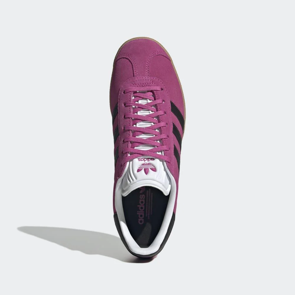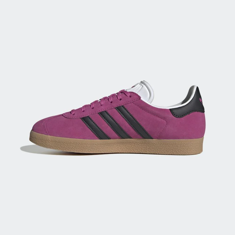 Inserciones laterales con las tres bandas dentadas en contraste, icónicas de la línea Gazelle.