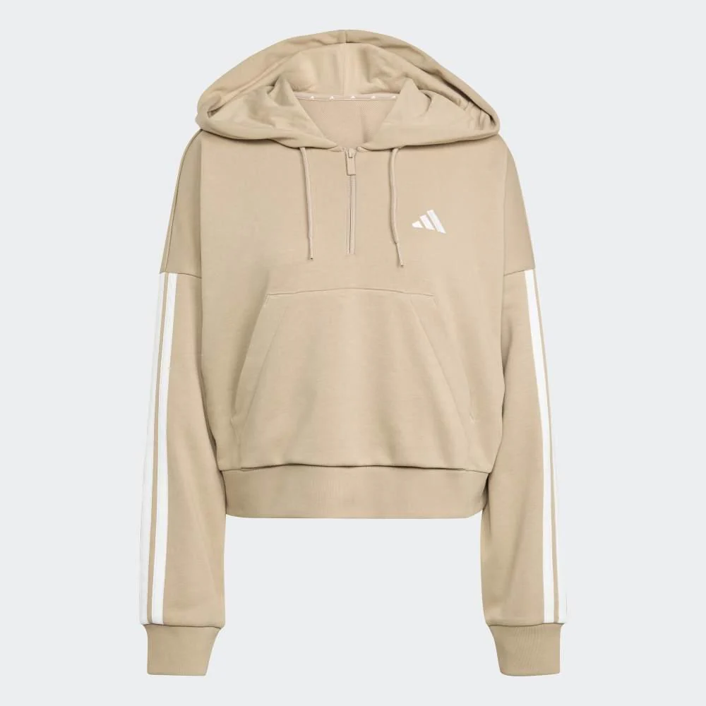 Diseñada para adaptarse a tu ritmo, la sudadera Adidas Essentials French Terry Quarter-Zip combina funcionalidad y estilo relajado en una prenda ideal tanto para salir como para descansar. Confeccionada en felpa suave y cálida, ofrece una sensación de confort envolvente desde el primer uso. Las icónicas 3 bandas recorren las mangas para aportar un toque deportivo clásico, mientras que la cremallera hasta el pecho y la capucha ajustable permiten personalizar el nivel de abrigo. Fabricada con al menos un 70% de materiales reciclados y renovables, esta sudadera demuestra que es posible vestir con comodidad, estilo y compromiso con el planeta.