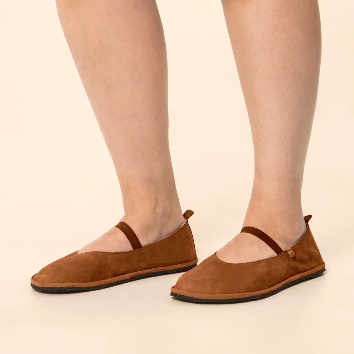 Estas Mary Janes en nobuk lavado combinan una esencia natural y minimalista con una suela ultraflexible y antideslizante, además de una innovación que respeta al planeta y a las personas.
