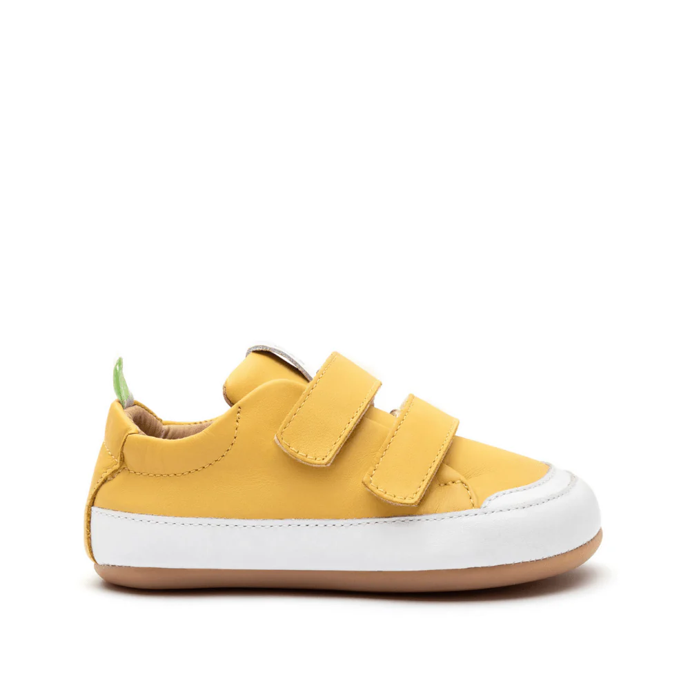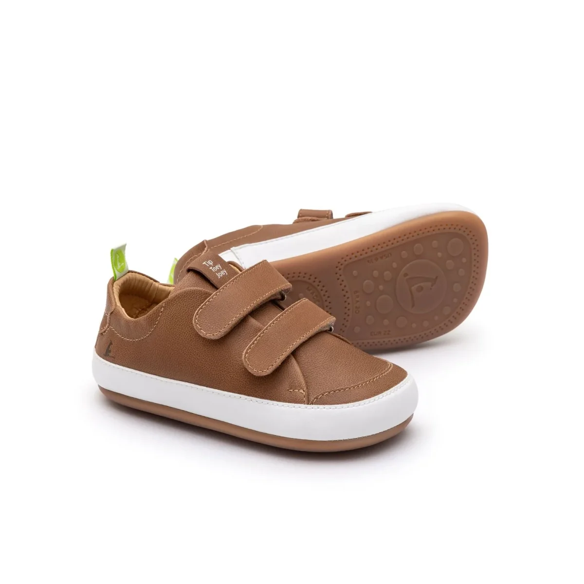 El modelo BOSSY de Tip Toey Joey, hecho de cuero suave, cuenta con cierres de velcro fáciles de ajustar, diseño cero drop que respeta la postura natural del pie, suela flexible y antideslizante, además de un práctico pliegue en la parte trasera que facilita el calce para que los más pequeños puedan ponérselos por sí mismos con total comodidad.