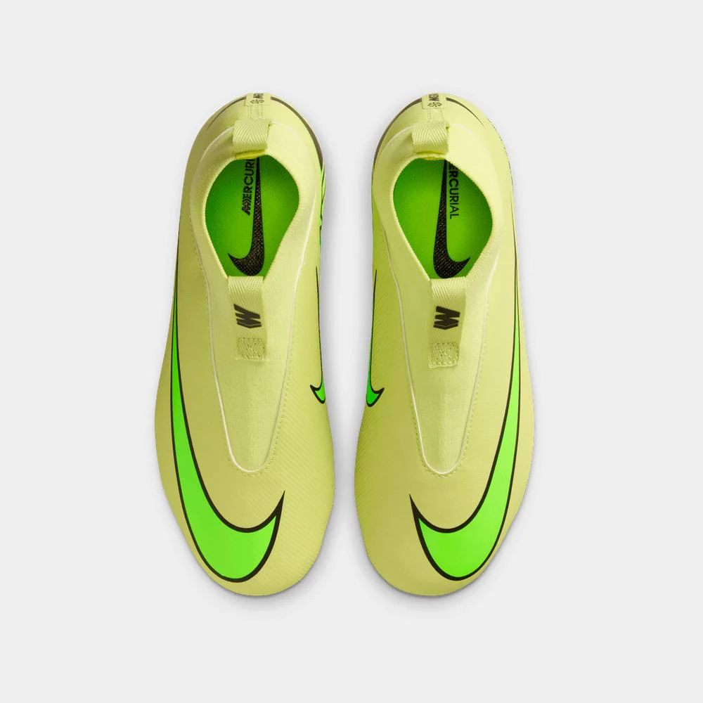 Diseñadas para jóvenes futbolistas que quieren jugar con velocidad, confianza y estilo, las Nike Jr. Mercurial Superfly 10 Academy de perfil alto están preparadas para acompañar cada regate, sprint y gol. Inspiradas en los modelos profesionales, incorporan una unidad Air Zoom en el talón que ofrece una sensación de impulso y reactividad excepcional, ideal para superar defensores y mantener el ritmo del partido. Su diseño sin cordones con presillas y correa facilita el calce, mientras que la parte superior NikeSkin proporciona un toque preciso del balón como si jugaran descalzos. Ligeras, cómodas y pensadas para superficies naturales y sintéticas, estas botas están hechas para que los más pequeños disfruten del fútbol al máximo desde el primer minuto.