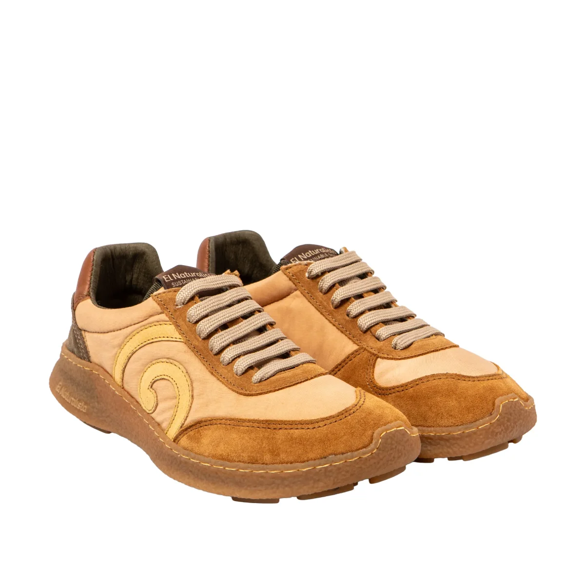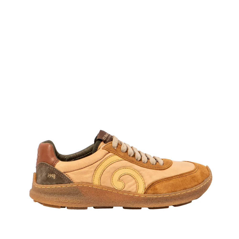 Zapatilla barefoot con diseño retro y suela flexible de caucho reciclado. Hecha con nylon y ante, combina estilo urbano y comodidad natural. Ideal para el día a día con conciencia ecológica.