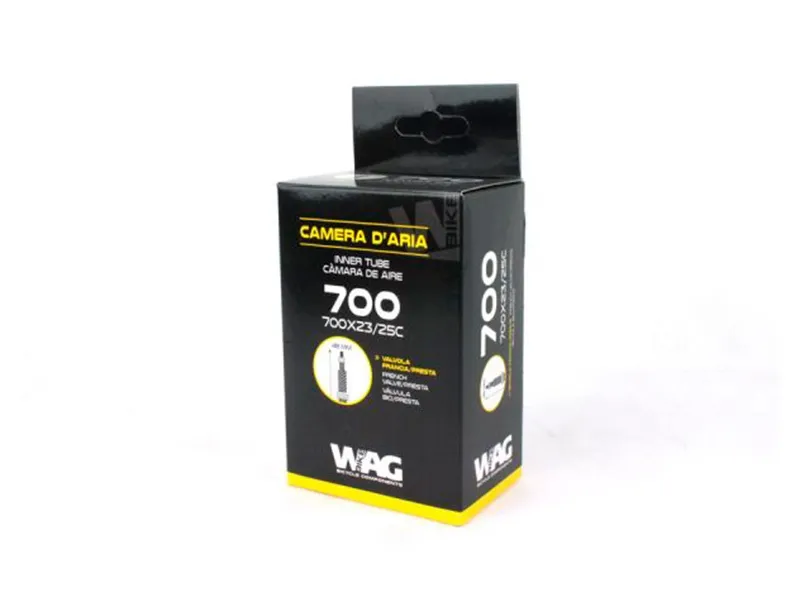 La cámara de aire Wag 700 x 23/25c se encarga de dar presión a la rueda y nos facilita el poder rodar con nuestra bicicleta. Está fabricada con goma de caucho y ofrece una buena resistencia frente a los elementos externos. Esta cámara de aire es muy ligera, tiene una longitud de válvula de 60mm y es ideal para su uso urbano o en carretera.