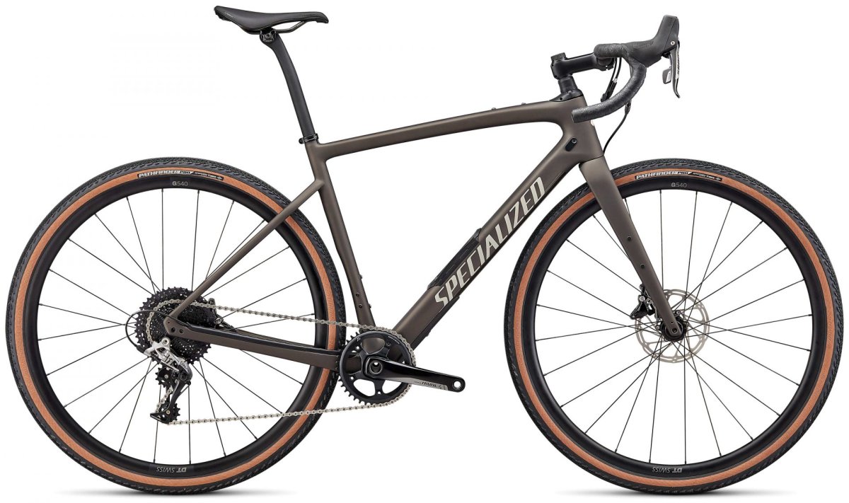 La Diverge Comp Carbon presenta el mismo cuadro de carbono FACT 9r y Future Shock 2.0 que la Pro pero con el grupo de gravel SRAM Rival 1 1×11 de cambio mecánico. Las ruedas de aluminio DT Swiss G540 te mantienen rodando de manera eficiente mientras que los neumáticos Pathfinder Pro de 42 mm ganadores de Kanza ofrecen rendimiento en asfalto liso caminos de tierra y pistas de grava. Para darle a la Diverge Comp una conducción perfectamente equilibrada montamos la tija de sillín Terra de Roval.