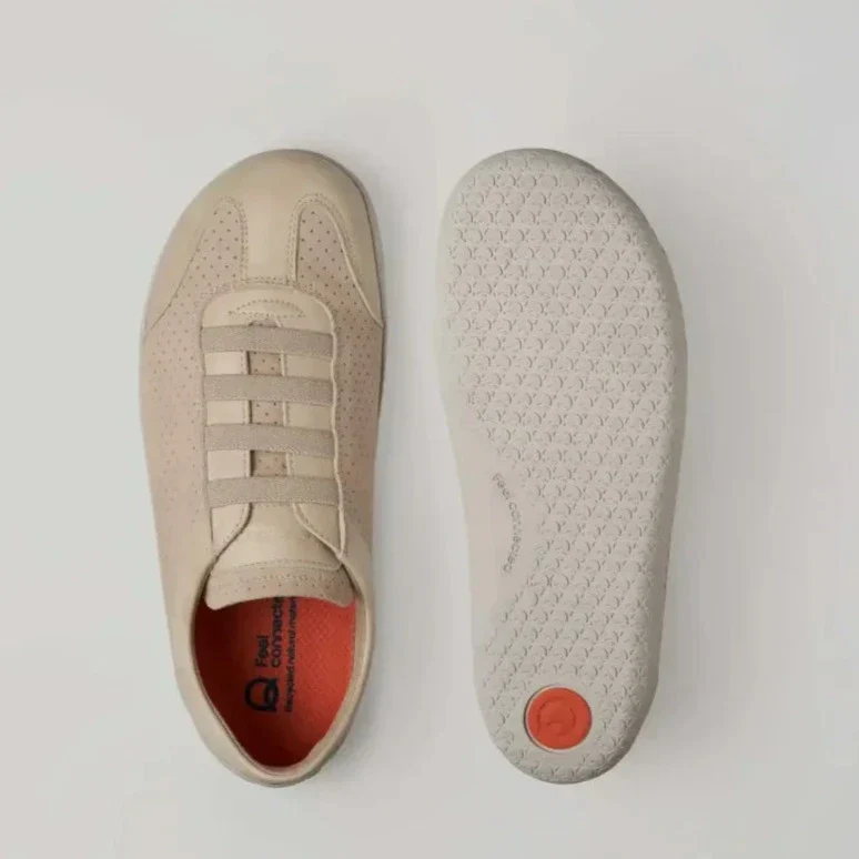El Modelo Folk es un zapato minimalista que fusiona suavidad y resistencia con estilo. Fabricado en napa natural libre de metales pesados, combina el tacto liso de la napa con la textura aterciopelada del serraje. Su suela de 4 mm, hecha de gomas naturales y recicladas, es ultraligera, flexible y con un agarre excepcional. El interior está totalmente forrado con textil Arnedry microperforado, que aporta transpirabilidad y durabilidad. Incluye una plantilla extraíble de 3 mm de EVA reciclada con carbón activo y tecnología Feel Connected