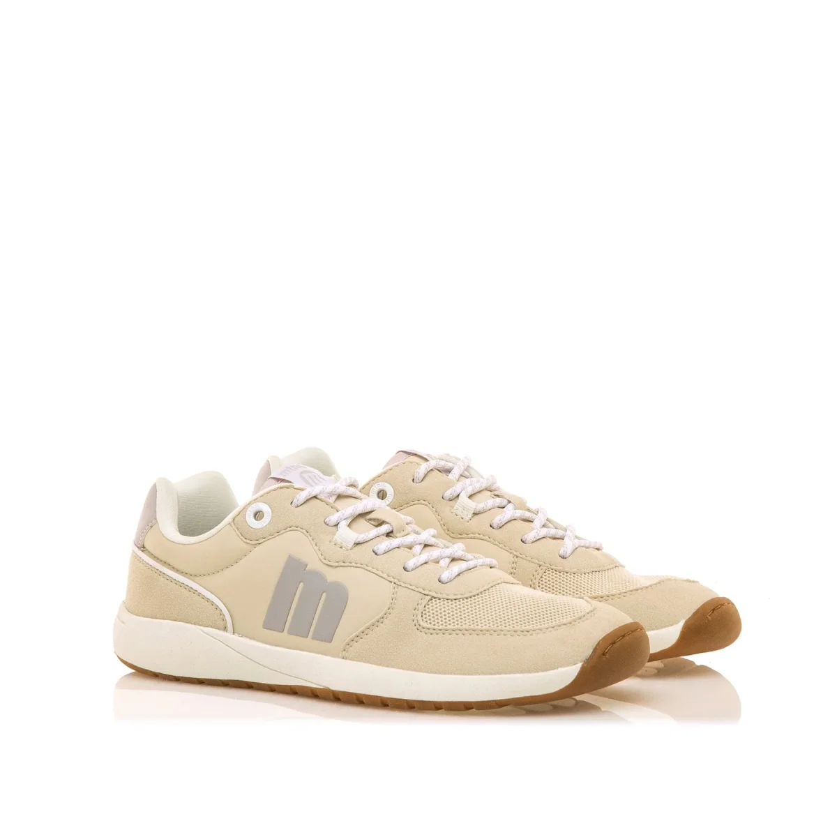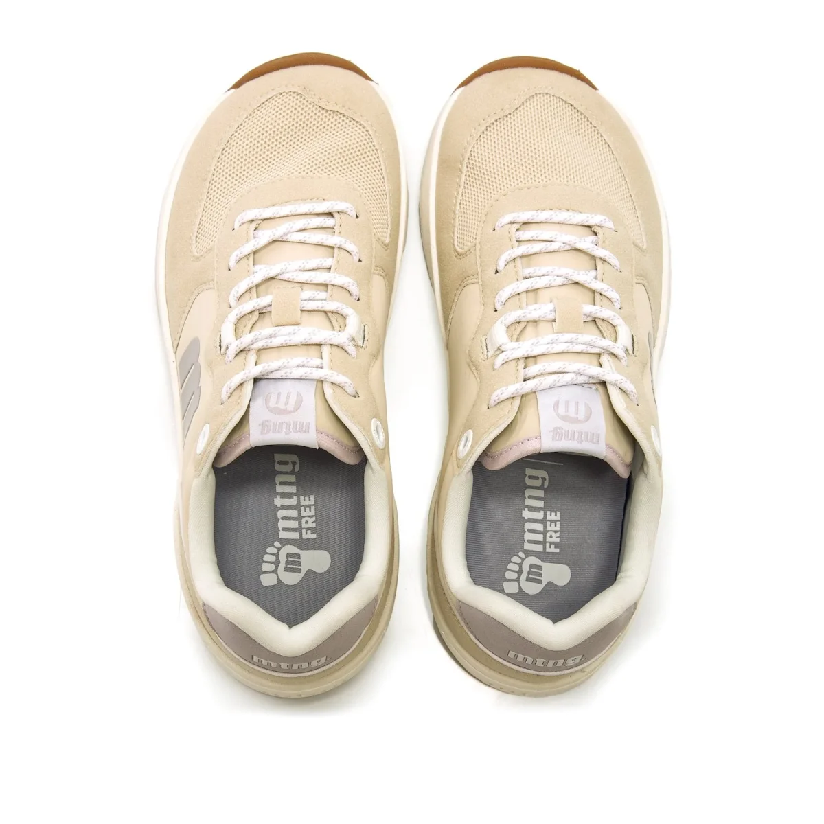 Zapatillas beige FREE Apolo de Mtng para mujer. Con detalles en azul bebé y suela de goma blanca. Diseñadas y desarrolladas especialmente en colaboración con el Dr. Juanjo López, traumatólogo deportivo, para respetar el desarrollo natural del pie. Se trata de un calzado minimalista que gracias a su puntera ancha, suela totalmente plana (cero drop) y flexibilidad, mejora la anatomía del pie y favorece una mejor posición del mismo. Se vende con una plantilla de transición para hacer el cambio de calzado convencional a minimalista de manera progresiva. Con certificado VEGANO sellado por INESCOP, el cual garantiza que la naturaleza química principal del material no se corresponde con fibras de origen animal. ¡Completa tus looks sport con FREE Apolo de Mtng!