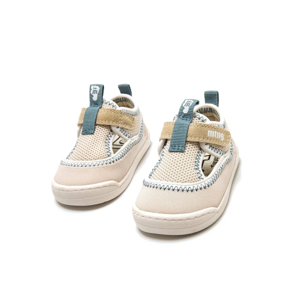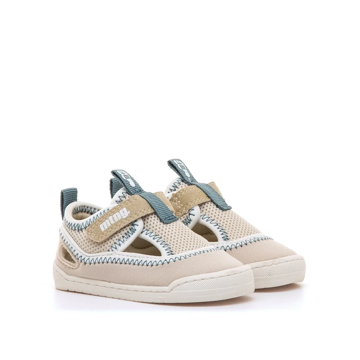 Sandalias barefoot de color beige para bebé, modelo Free Baby de mtng con abertura lateral. El cierre adhesivo con tirador azul facilita el calce y el tejido combina malla transpirable con refuerzos textiles, ofreciendo una mayor ventilación y comodidad. Diseñada y desarrollada especialmente en colaboración con el Dr. Juanjo López, traumatólogo deportivo e infantil, para respetar el desarrollo natural del pie de los niños. Gracias a su puntera ancha permite el libre movimiento de los dedos dentro del zapato. Su suela tiene 3 mm de grosor y con zero drop (totalmente plana) respeta el natural desarrollo del pie del pequeño y sus elementos flexibles y torsionables hace que el pie del niño no esté encorsetado por la estructura del zapato. Las plantillas extraíbles facilitan comprobar si la talla del calzado es la correcta para tu hijo. Además, su fácil apertura facilita que el niño pueda descalzarse y calzarse de forma autónoma. Con certificado VEGANO sellado por INESCOP, el cual garantiza que la naturaleza química principal del material no se corresponde con fibras de origen animal.