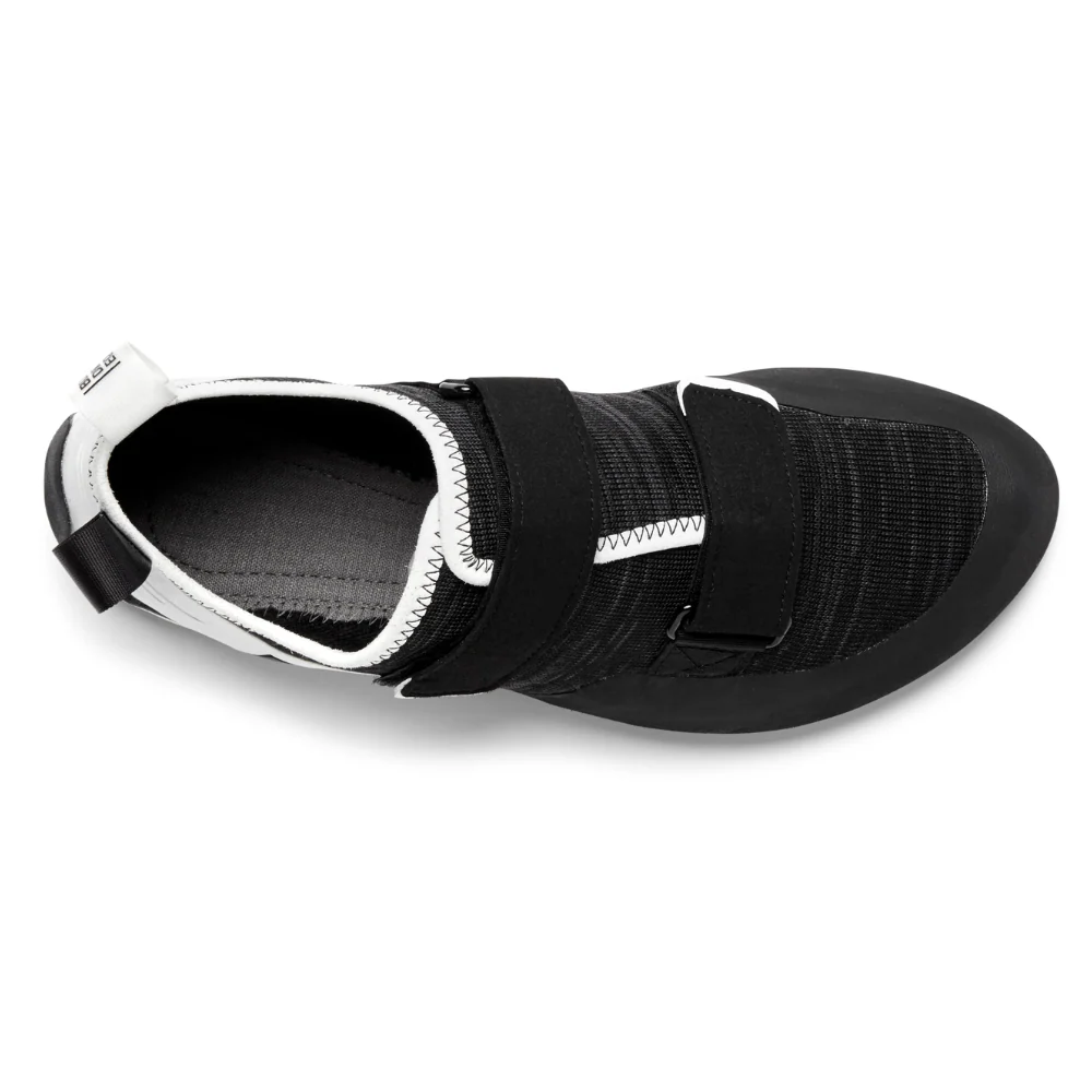 La suela de la Momentum es única en su clase: está **moldeada** en lugar de cortada a partir de una lámina de goma. Este proceso permite optimizar el peso, la consistencia y la durabilidad, utilizando nuestra goma NeoFriction diseñada específicamente para ofrecer tracción y seguridad tanto en plásticos de gimnasio como en roca real. Con un sistema de doble velcro, el ajuste es rápido, firme y personalizable.