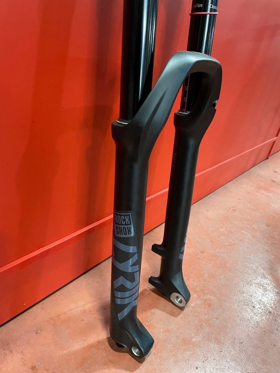 La horquilla RockShox Lyrik RCT3 de Enduro y All Mountain dispone de un chasis totalmente nuevo y revisado, con botellas cónicas y para mayor rigidez y un peso más ligero. Se ha diseñado con nuevas tecnologías como un muelle Solo Air y las configuraciones de aire de doble posición, los sellos de freno SKF para una menor fricción y un mejor sellado, y el amortiguador de rebote regulable mediante calas internas. La Lyrik está construida para inspirar confianza y difuminar las líneas de capacidad que limitan a las demás horquillas de su clase. Las características probadas incluyen tubos superiores de 35 mm Fast Black y un amortiguador RCT3 con nuevo sello del cartucho SKF para reducir la fricción y los intervalos de mantenimiento.