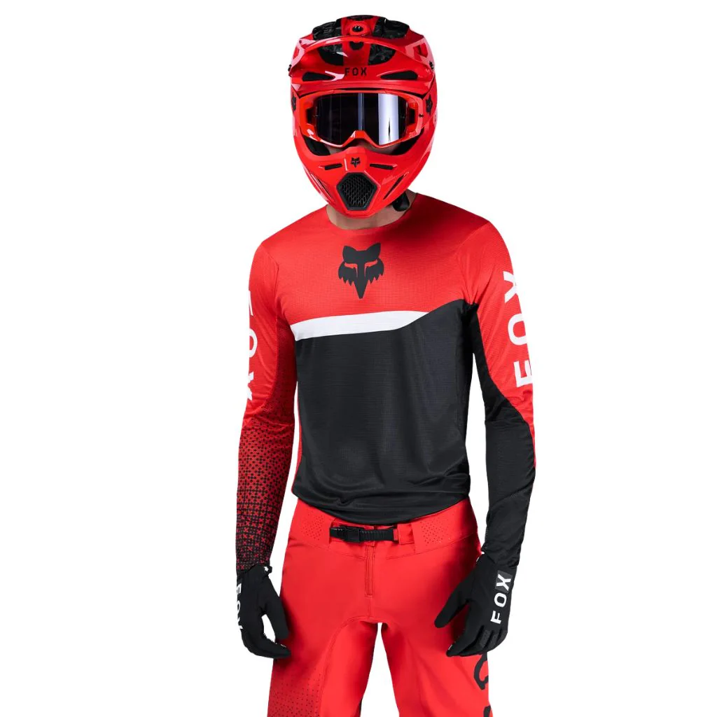 «description»: «Jersey Fox Flexair Fracture en color Rojo (Red). Movilidad inigualable, tejido TruDri ultraligero y ventilación láser. El jersey premium para Motocross y MTB.»,