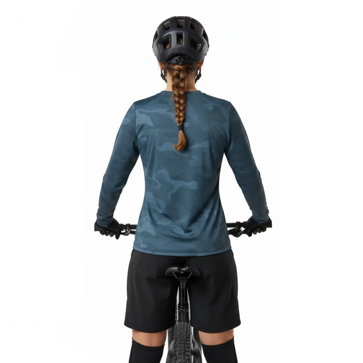 «description»: «Jersey de ciclismo de montaña Fox Ranger para mujer de manga corta en color Azul Vintage. Tejido TruDri que absorbe el sudor, ajuste casual. Disponible en Azimut Adventure.»,