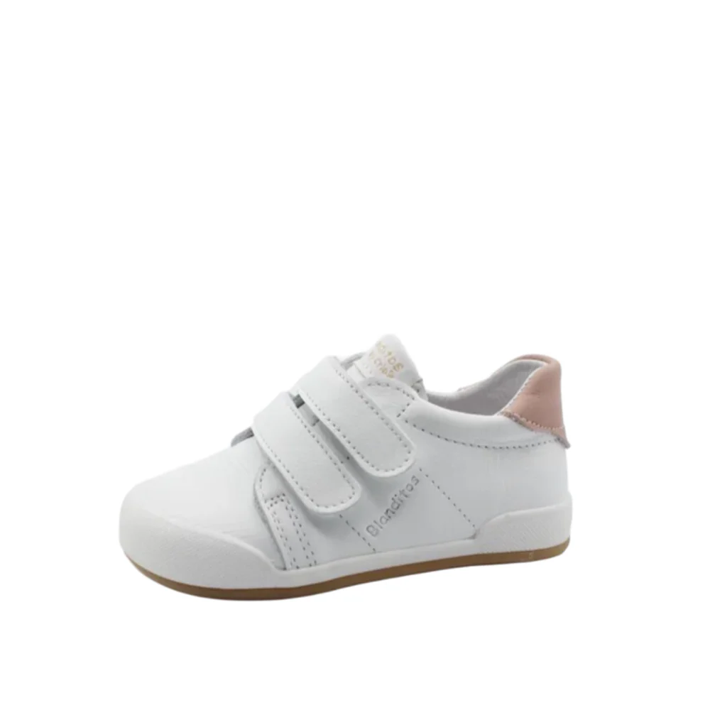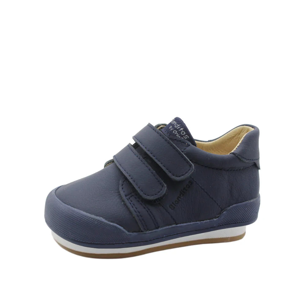 El modelo Londres de Blanditos es ideal para los primeros pasos. Hecho en piel suave, con puntera reforzada, suela flexible y doble cierre de velcro para un ajuste cómodo y seguro.
