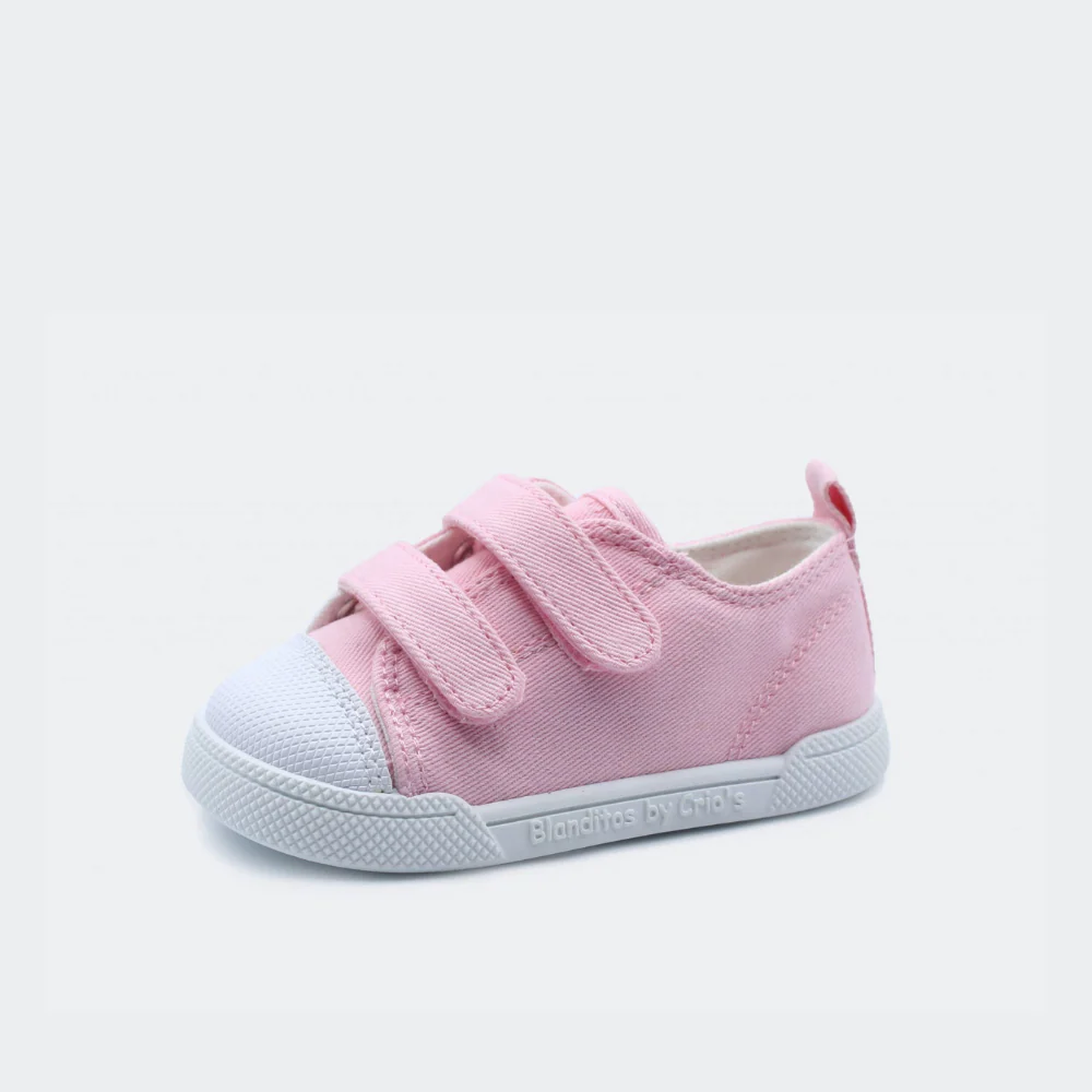 Melón de Blanditos. Está hecho en lona colores pasteles, ideal para climas cálidos. Su diseño es fresco y ligero, con doble cierre de velcro que facilita el ajuste, puntera reforzada de goma blanca y suela antideslizante.