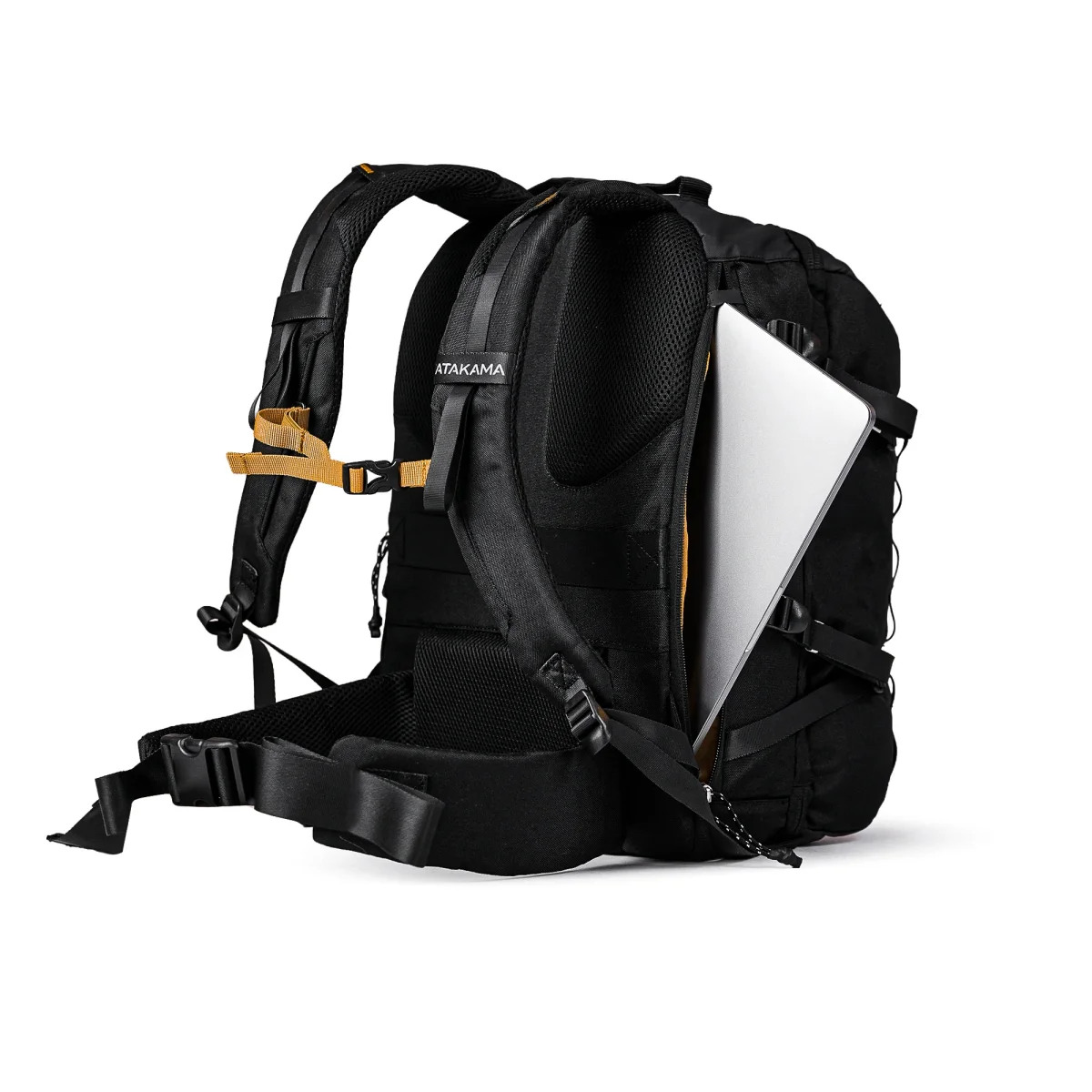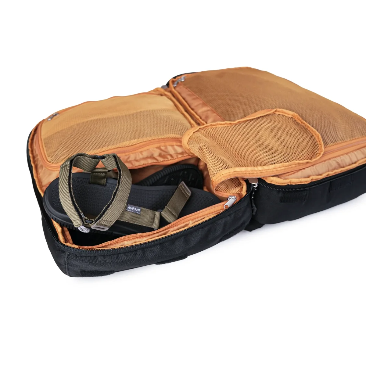 Mochila de viaje con apertura 180°, compartimiento para computador, múltiples bolsillos y correas ergonómicas; cumple medidas de cabina.