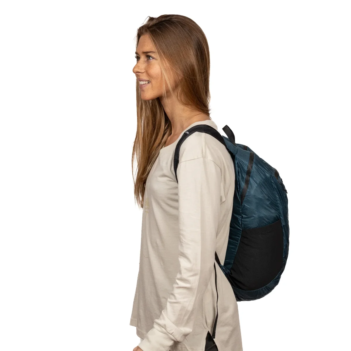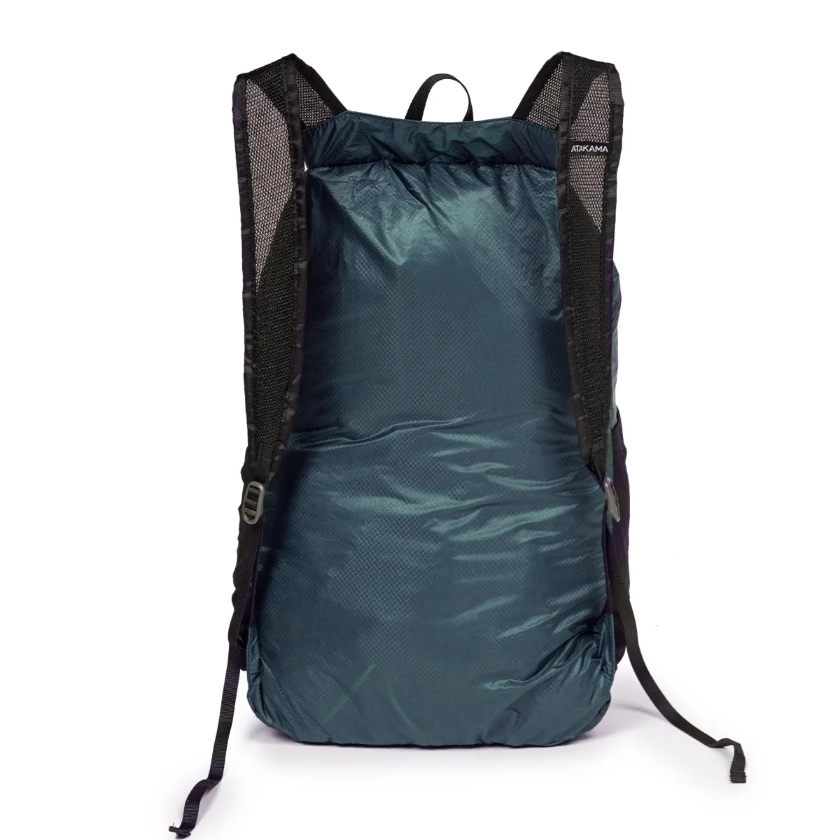 Mochila plegable y liviana, repelente al agua, ideal para paseos cortos, cerros bajos o la playa.