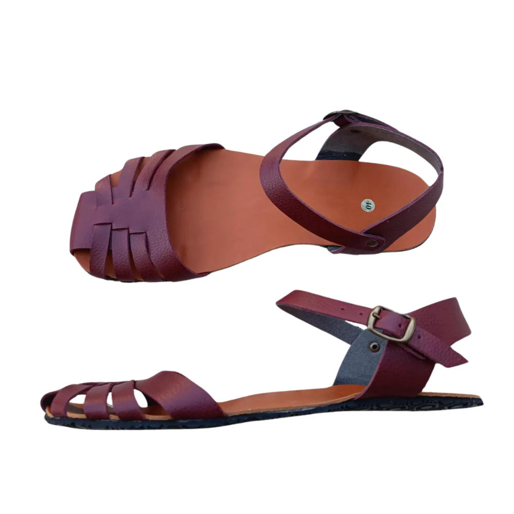Sandalias barefoot modelo Petra, pensadas para el uso diario con un diseño artesanal y elegante en color burdeos. Confeccionadas en cuero de curtido vegetal, ofrecen un ajuste seguro gracias a su correa con hebilla y brindan máxima libertad al pie gracias a su suela delgada y flexible. Una opción minimalista, fresca y cómoda para quienes priorizan naturalidad y estilo en cada paso.