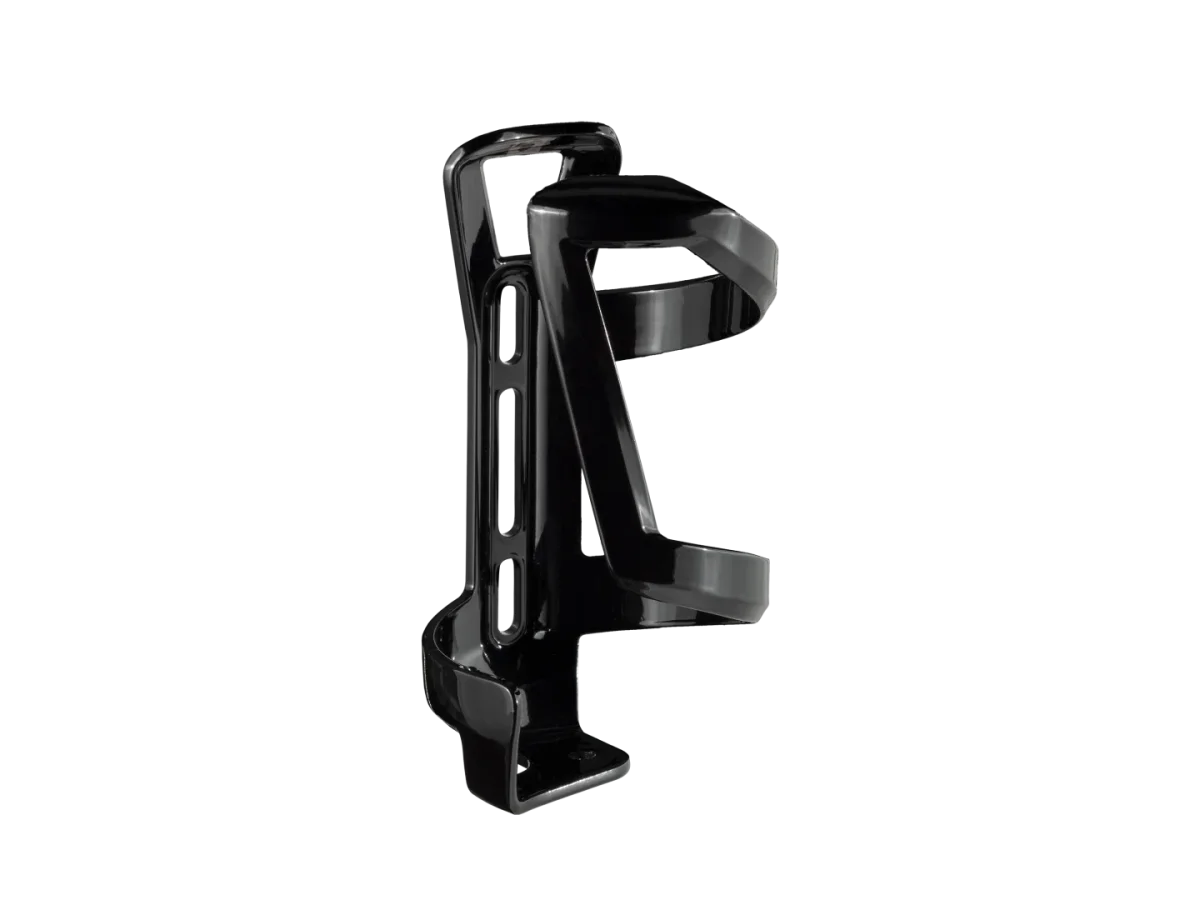 Este portabidón lateral, fabricado con material reciclado, permite acceder fácilmente al bidón en cuadros pequeños y espacios ajustados.
