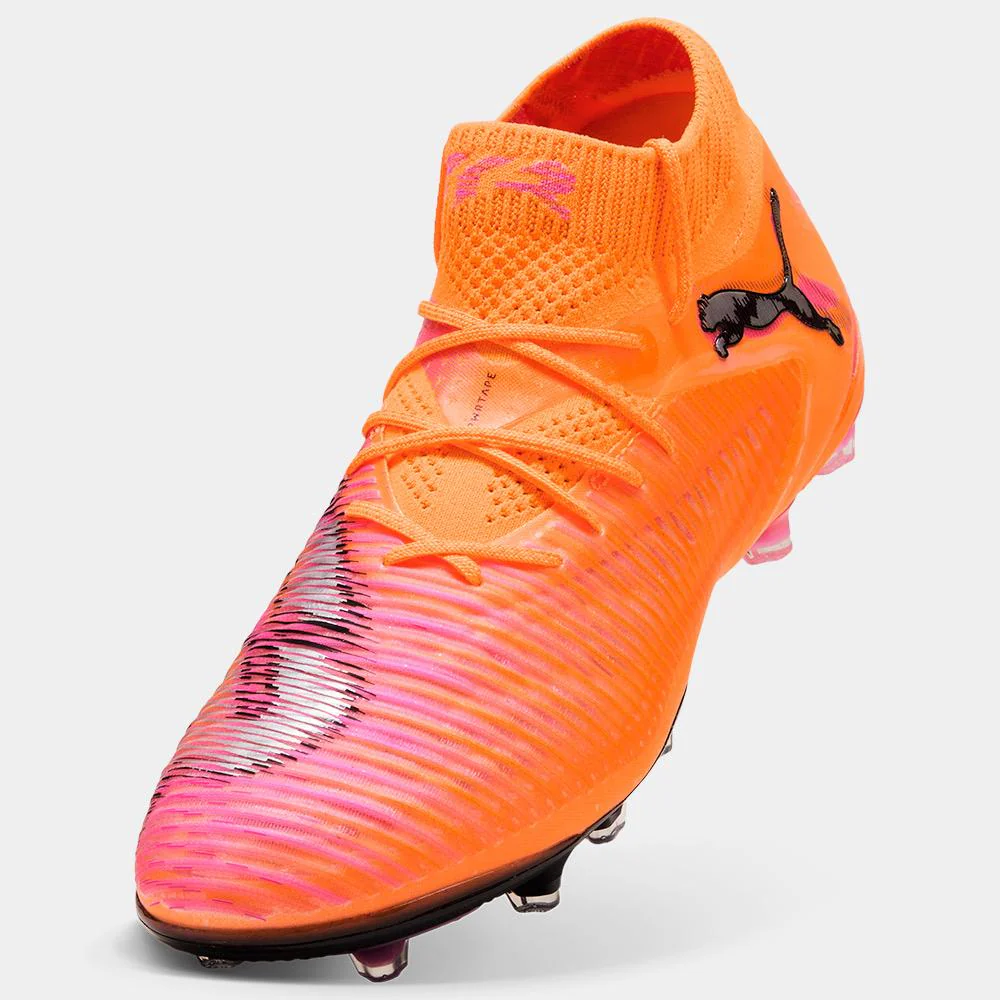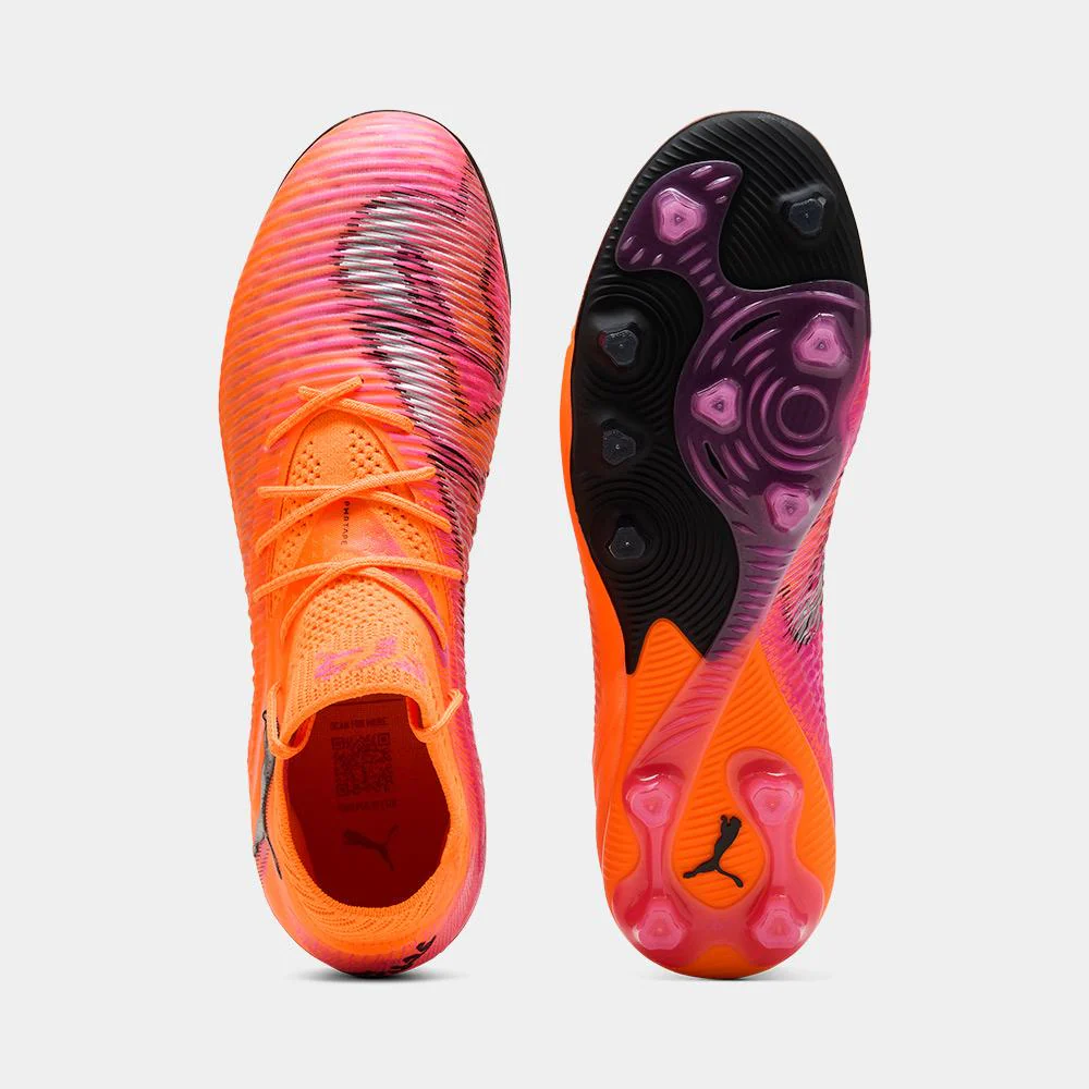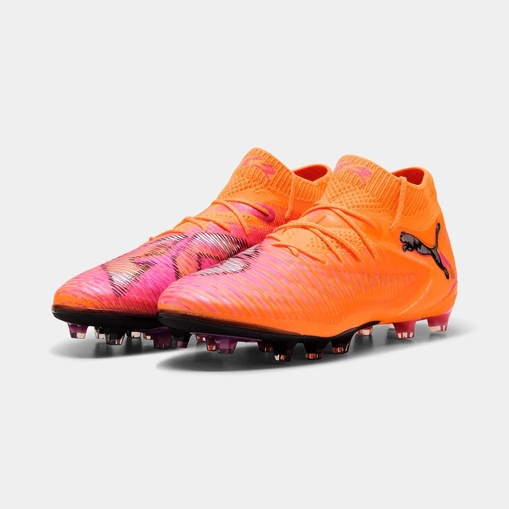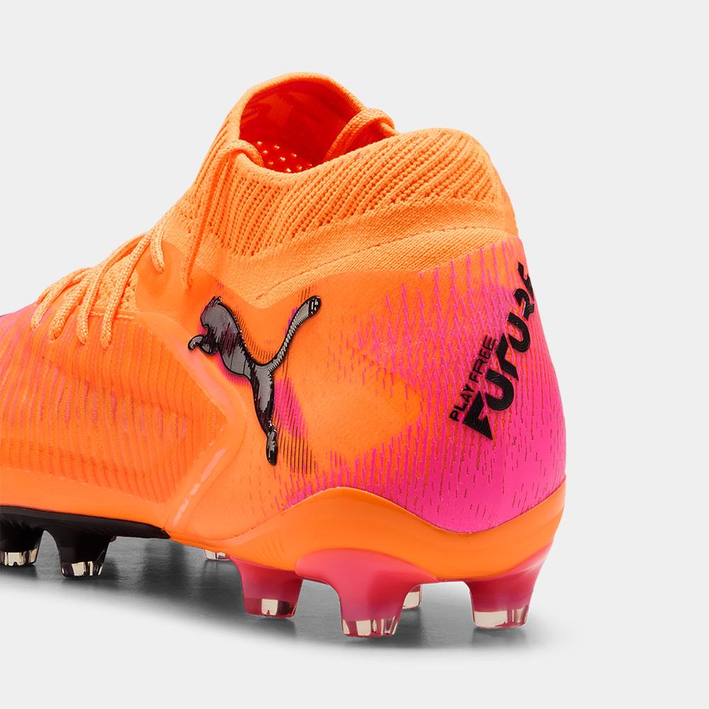 Las nuevas Puma FUTURE 8 ULTIMATE AG están diseñadas para los jugadores creativos que dominan el juego con visión, control y agilidad en superficies de césped artificial. Gracias a su revolucionario sistema de ajuste adaptable FUZIONFIT360, la bota se adapta al pie proporcionando sujeción óptima sin comprometer la libertad de movimiento. La parte superior incorpora la tecnología PWRTAPE que refuerza la estabilidad, mientras el recubrimiento 3D Grip Zones mejora el control del balón en todas las condiciones de juego. Su suela exterior AG ofrece tracción superior para giros rápidos y cambios de dirección explosivos en campos de última generación. Su vibrante diseño en naranja, con detalles en rosa y negro, refleja la energía y el estilo audaz de los jugadores que marcan la diferencia.