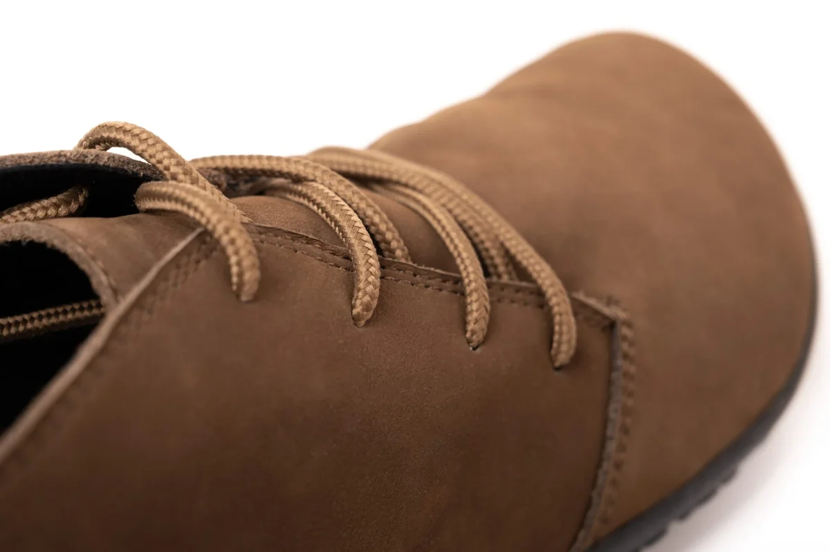 Este botín minimalista en tono marrón ofrece un estilo versátil y atemporal, ideal para el día a día. Confeccionado en cuero suave y suela delgada y flexible, permite una sensación natural al caminar, mientras que el diseño de cordones asegura un ajuste cómodo y seguro.