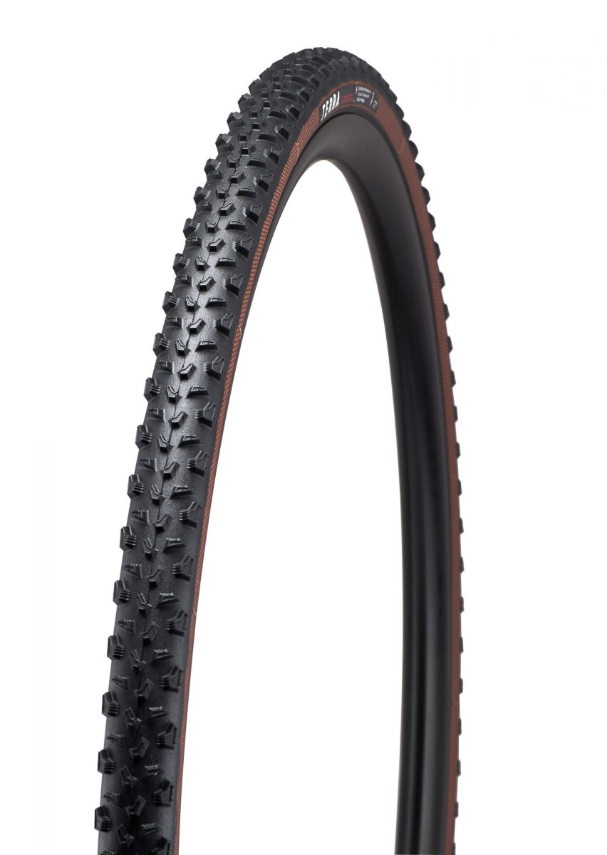 The new tubeless-ready S-Works Terra is made for CX racing in muddy conditions and spec’d with a light and supple 120 TPI casing with grippy T7 GRIPTON® compound. This rubber grips in all course conditions and will give you confidence on every race lap. The new GRID RACE sidewall protection is a lightweight cross-woven polyamide mesh which is tear- and puncture-resistant but still very elastic for a supple ride. GRID RACE provides the best combination of protection low weight and speed all while maintaining a responsive feel. A strong bead holds to the rim at low tire pressures and the tire cross-section is designed to meet the UCI rule of 33 mm on a wide modern rim shape.