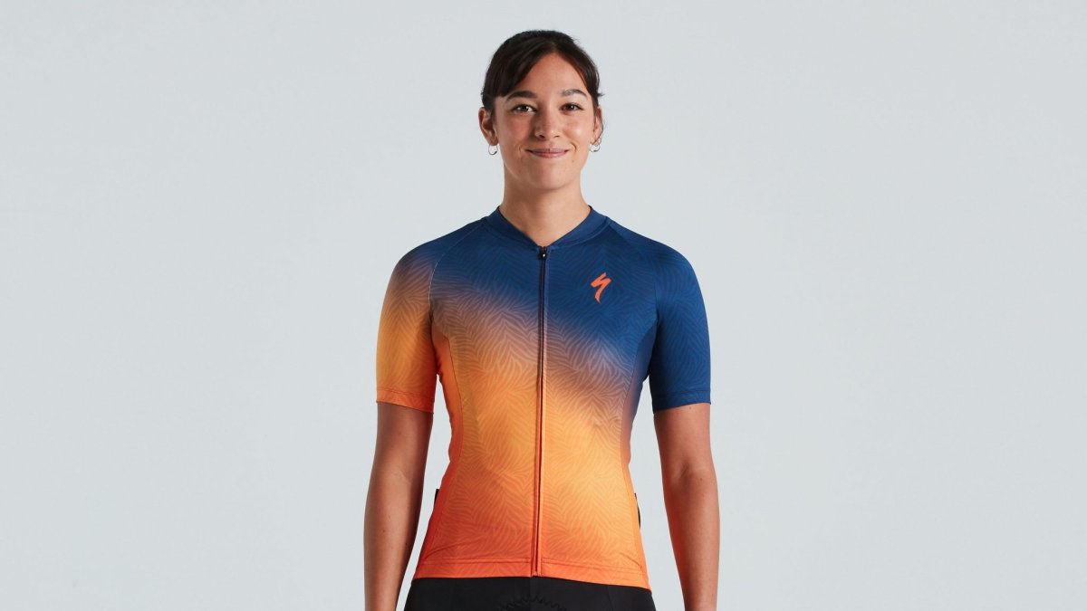 Women’s short sleeve cycling jersey made of elastic and comfortable SL 136 fabric.
