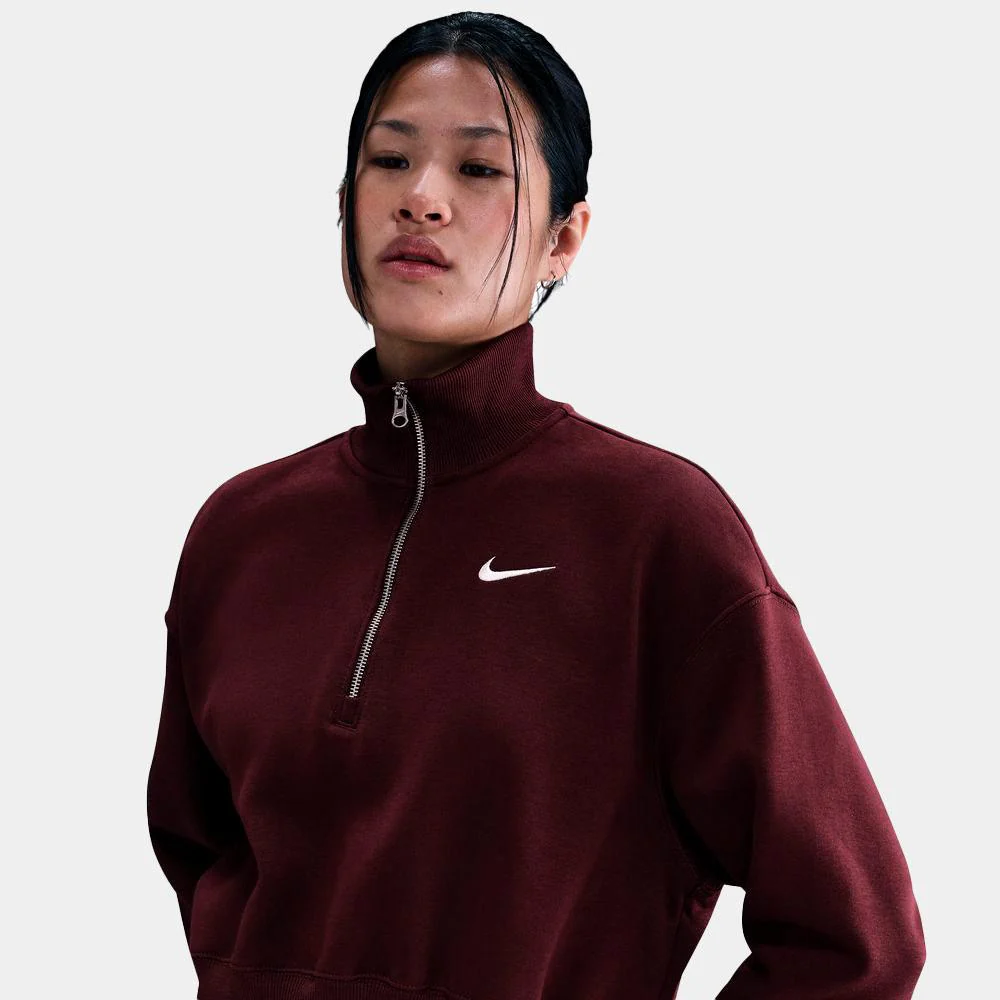 La Nike Sportswear Phoenix Fleece Sudadera corta con diseño de cremallera de 1/4 para mujer combina comodidad, estilo y versatilidad en una sola prenda. Diseñada para convertirse en un esencial de tu vestuario, ofrece un look moderno gracias a su corte corto y al ribete más alto en puños, cuello y dobladillo, que aportan estructura al ajuste. Su confección en tejido Fleece de densidad media garantiza suavidad en el interior y un acabado liso en el exterior, ideal para mantener la calidez sin perder ligereza. Con costuras caídas en los hombros y mangas amplias, esta sudadera aporta un aire relajado y actual perfecto tanto para tus momentos de descanso como para tus combinaciones urbanas de diario. Una pieza que refleja la esencia de Nike, pensada para quienes buscan confort sin renunciar al estilo.