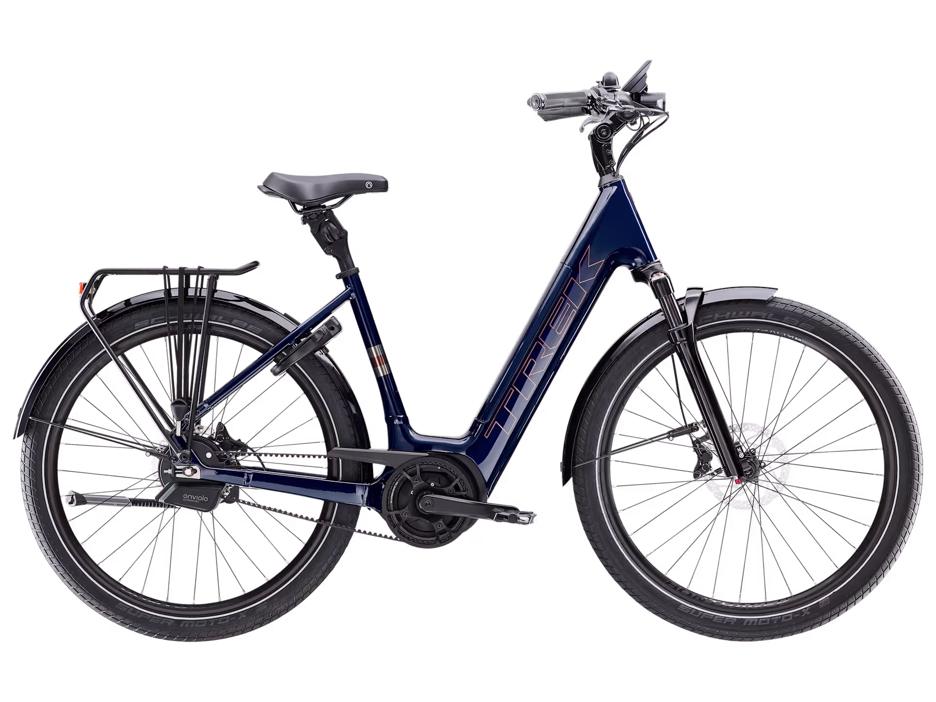 Un cuadro de aluminio hidroformado con batería integrada y una horquilla con suspensión delantera para suavizar los terrenos difíciles. Una correa de transmisión Gates CDX con buje Enviolo Trekking Automatic con cambio automático y sistema inteligente Bosch Performance Line Cruise (250 Wh, 75 Nm) para ofrecer una asistencia de hasta 25 km/h. Una consola Kiox 500 con conectividad Bluetooth, que se sincroniza con el smartphone, un antirrobo Bosch BCM, que incrementa la protección, frenos de 4 pistones para frenar con confianza y portabultos y luces para los desplazamientos urbanos.