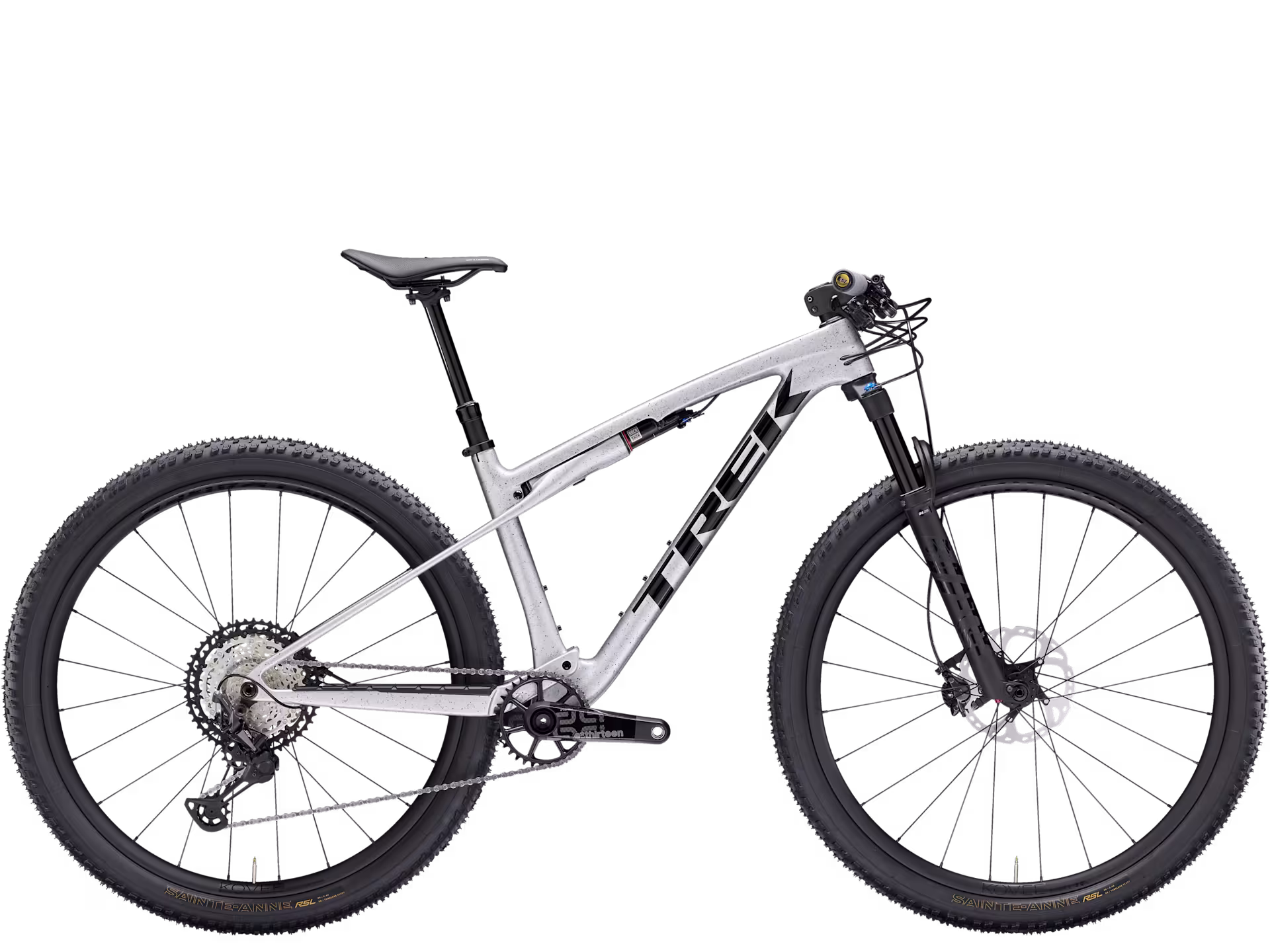 Un cuadro de carbono OCLV Mountain SLR de alto módulo y ligero como una pluma con geometría moderna de XC, horquilla Fox Performance 34 step-cast de 110 mm con amortiguador de aire Float EVOL, GRIP y doble bloqueo remoto, y suspensión trasera IsoStrut de 80 mm con amortiguador RockShox SIDLuxe. Una transmisión Shimano XT de 12 velocidades, ruedas de carbono Bontrager Kovee Elite 30, potencia/manillar integrados Bontrager RSL de carbono, tija telescópica Bontrager Line y frenos de disco hidráulicos Shimano Deore XT M8100.