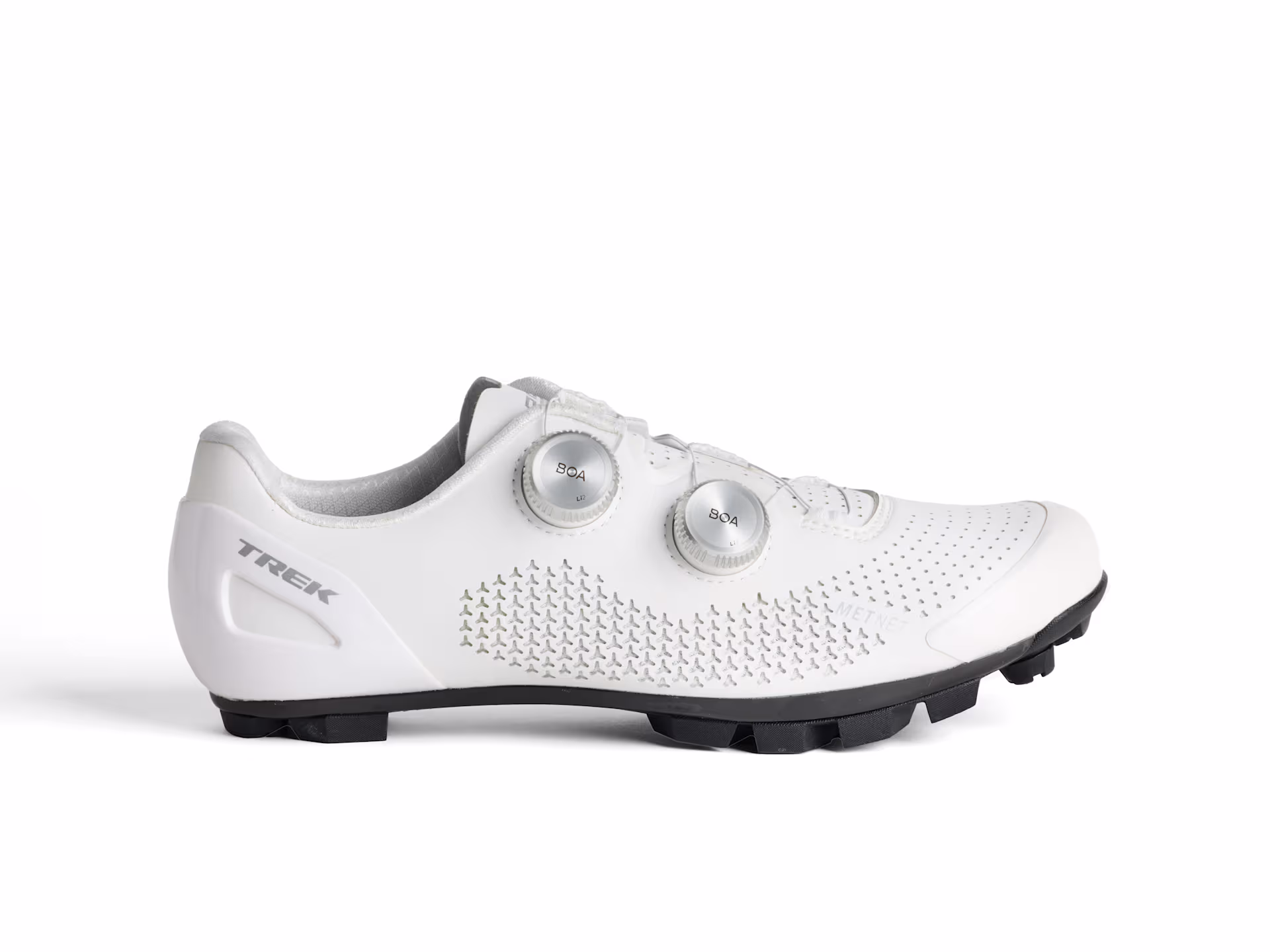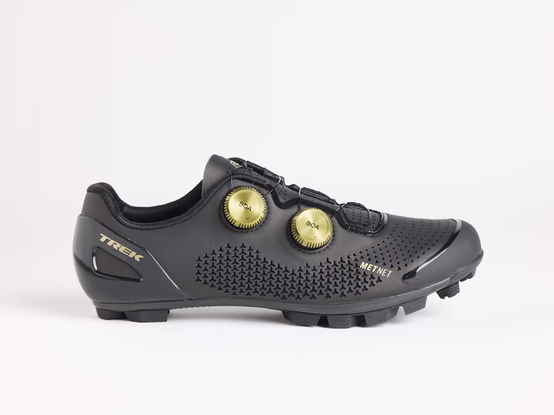 Están confeccionadas con la placa de carbono 100% OCLV más rígida y ligera de Trek para no desperdiciar ningún vatio. El sistema de cierre BOA con dos diales Li2 y las zonas de alivio METNET sujetan cómodamente el pie para disfrutar de una eficiencia inigualable. Presentan una suela exterior Tachyon, preparada para la competición, y clavos extraíbles en la puntera y el talón, que aportan la mejor tracción al bajar de la bicicleta.