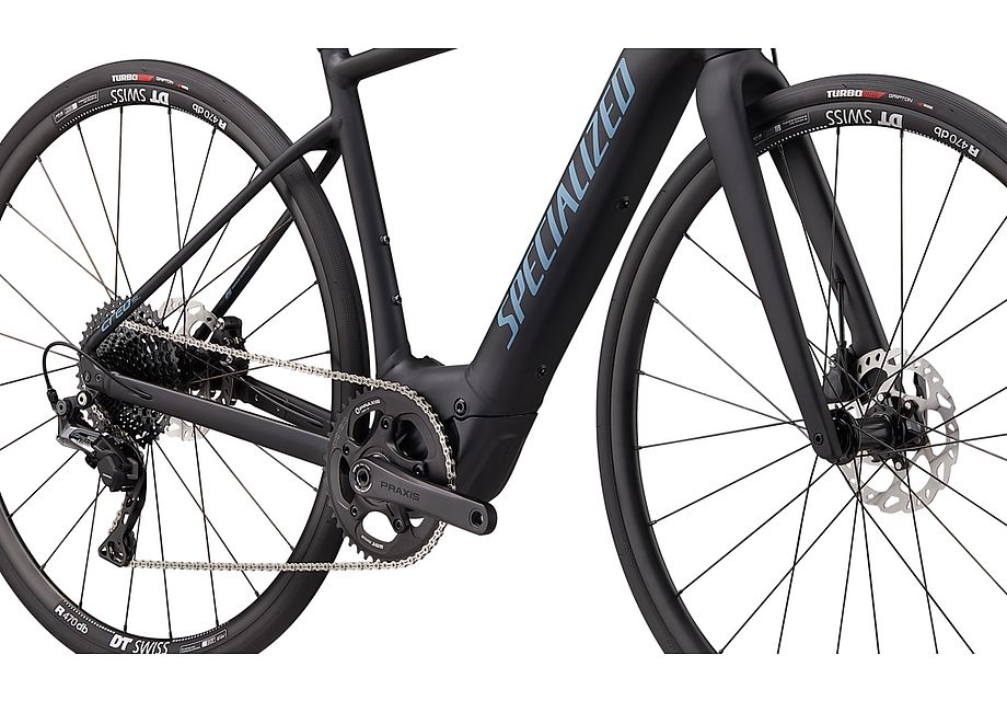 Tenemos una larga historia en el desarrollo de las bicis de carretera con el mejor rendimiento del mundo. Tarmac, Venge, Roubaix, Allez, Diverge: cada una domina su categoría respectiva, con las mejores tecnologías que hay en la industria. Y si bien eso es un palmarés difícil de seguir, la Turbo Creo SL redefine el rendimiento de las bicicletas e-road. Es ligera, cómoda; eficiente y vivaz, y con el poder de allanar las montañas; reírse de los vientos en contra e ir más lejos de lo que creías posible. Eres tú; solo que más rápido. La Turbo Creo SL Comp cuenta con un cuadro E5 Premium Aluminum con el Future Shock 1.5. Para el montaje, hemos incluido un grupo Shimano GRX que se ocupa de las tareas de cambio y frenado, mientras que las llantas DT R470 Boost™ montan neumáticos Turbo Pro de 28 mm para que te despreocupes. En lo referente al sillín; encontrarás nuestro Body Geometry Power Sport, el favorito de los fans, que ofrece mucha comodidad.