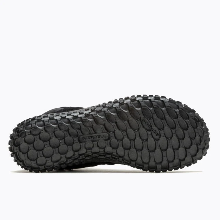 Bota barefoot versátil con diseño minimalista que imita la forma natural del pie. Cuenta con membrana impermeable, empeine de piel de porcino, cordones tradicionales con corchetes, lengüeta de fuelle y forro de malla transpirable. Suela de goma Merrell Quantum Grip™ para máximo agarre en montaña.