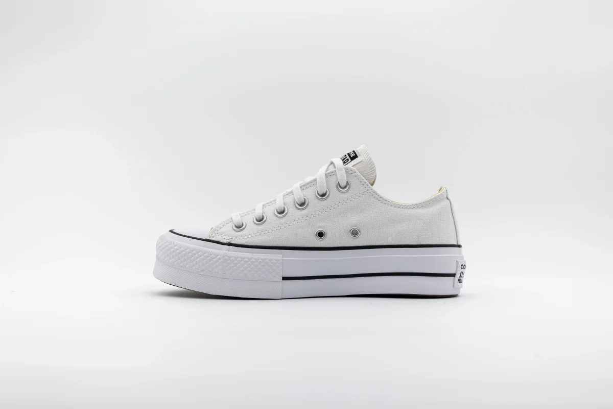 Dale un impulso a tu estilo diario con las zapatillas Converse Chuck Taylor All Star Lift Platform Canvas, una versión de plataforma que eleva tanto tu look como tu comodidad. Diseñadas para quienes quieren destacar sin perder el toque clásico, estas Chucks ofrecen la altura justa con una suela elevada que estiliza sin comprometer el confort. La parte superior de lona resistente conserva el diseño atemporal de Converse, mientras que la amortiguación EVA proporciona una pisada suave y ligera, ideal para el uso diario. Su tonalidad neutra facilita las combinaciones con cualquier conjunto, convirtiéndolas en un básico imprescindible. Detalles icónicos como la etiqueta All Star en la lengüeta y la clásica placa en el talón refuerzan la esencia de un modelo que evoluciona sin dejar de ser fiel a sus raíces.
