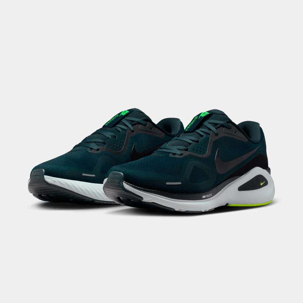 Las Nike Structure 26 para hombre están diseñadas para corredores que buscan estabilidad, amortiguación y confort en cada zancada sobre asfalto. Su mediasuela completa de espuma ReactX ofrece una pisada acolchada y reactiva del talón a la puntera, mientras que el sistema de sujeción en el mediopié y el talón proporciona firmeza adicional y reduce el índice de eversión del tobillo, asegurando una plataforma estable para transiciones y despegues seguros. La parte superior de malla Engineered Mesh combinada con la zona del tobillo y la lengüeta acolchadas aporta ajuste envolvente, comodidad y soporte durante todo el entrenamiento. La suela exterior integra zonas de protección estratégicas y goma inflada en el antepié para una mayor amortiguación, mientras que la goma de alta resistencia en el talón garantiza durabilidad. Estas zapatillas son ideales para corredores que necesitan estabilidad sin sacrificar ligereza ni confort en sus sesiones diarias.