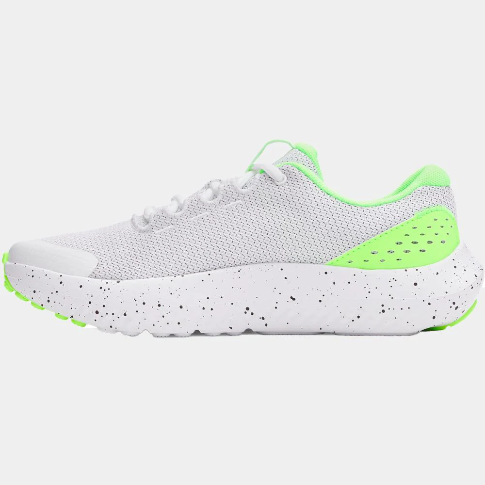Las zapatillas UA BGS Surge 4 están diseñadas para jóvenes deportistas que buscan un calzado ligero, cómodo y resistente que les acompañe en todas sus actividades. Su parte superior de malla transpirable combinada con refuerzos sintéticos ofrece durabilidad y soporte, mientras que la superposición de TPU en el talón aumenta la estabilidad y resistencia al desgaste. Con un acolchado mejorado alrededor del cuello del tobillo, estas zapatillas garantizan confort durante todo el día. La plantilla de EVA a lo largo de toda la suela interna proporciona un ajuste personalizado y una sensación suave. Su mediasuela de EVA amortiguada entrega una pisada ligera y reactiva, mientras que la suela exterior con pequeños tacos de goma mejora el agarre y la tracción en distintas superficies.