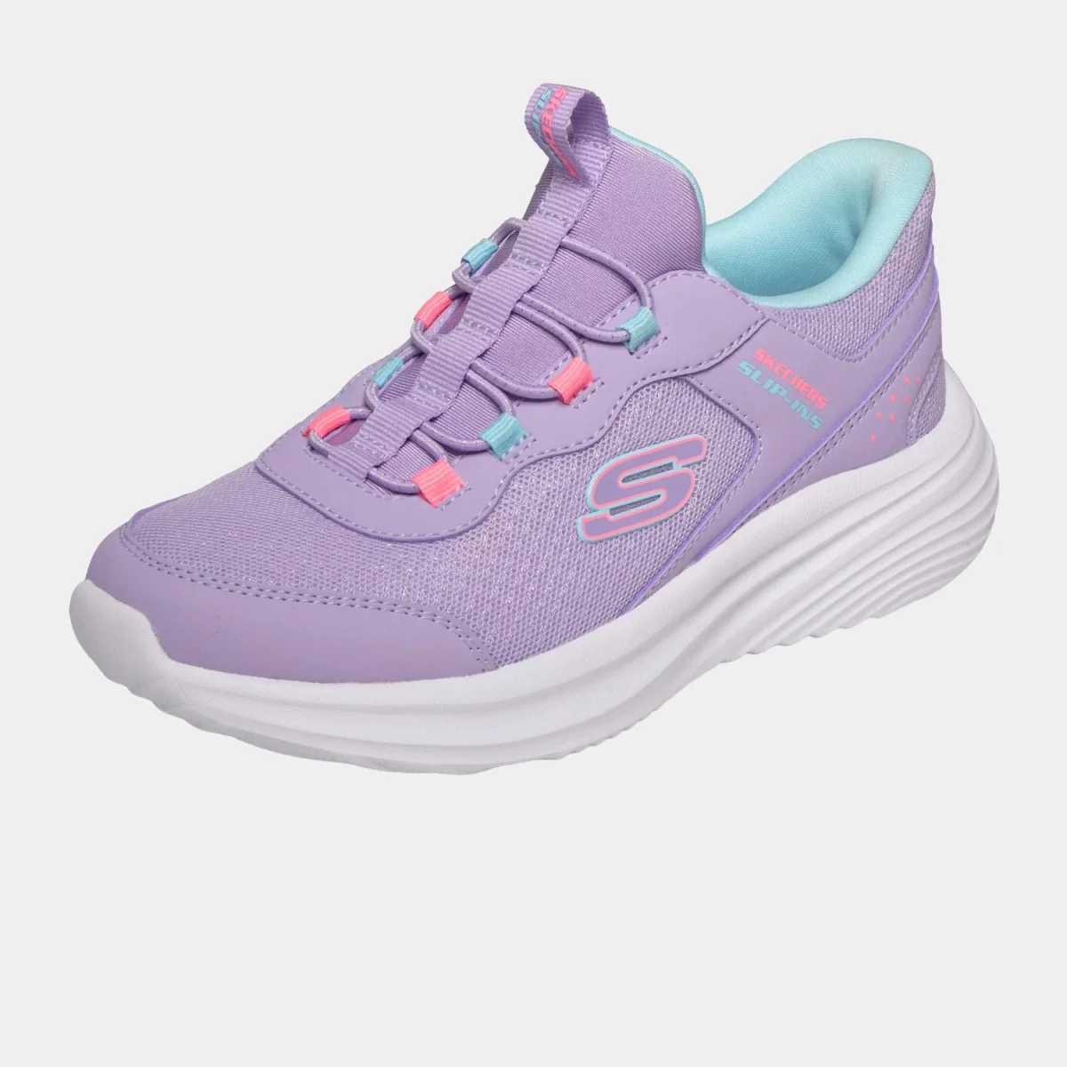 Las zapatillas Skechers Slip-ins: Bounder Pro para niña están diseñadas para ofrecer un calce fácil, comodidad duradera y un ajuste seguro durante todo el día. Gracias a la tecnología Hands Free Slip-ins® con Heel Pillow™, las más pequeñas pueden calzárselas sin esfuerzo mientras el pie queda bien sujeto. Su parte superior de malla y material sintético con cordones elásticos fijos, junto con el cierre adaptativo easy on / easy off, proporciona una sujeción cómoda, mientras que la plantilla Skechers Air-Cooled Memory Foam™ aporta una pisada suave y transpirable. Un modelo práctico y resistente para el cole y el uso diario.