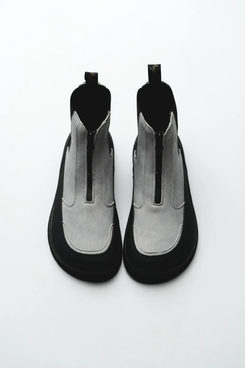 Zuri son unas botas chelsea barefoot de carácter urbano, inspiradas en el movimiento diario. Su diseño limpio y contemporáneo incorpora cremallera frontal para un calce rápido y cómodo, puntera ancha y suela flexible de caucho natural cosida para mayor durabilidad. Ligeras y funcionales, están fabricadas con parte superior de ante de microfibra y paneles de diamante (50% TPU, 50% PA), forro y cordones de poliéster reciclado.
